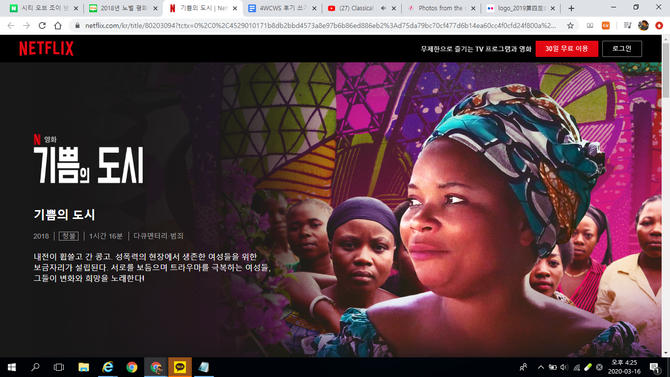 백목련 : 이전 플레너리 중 콩고 민주 공화국의 씨티 오브 조이라는 쉼터 설립기금을 이브가 모아왔다는 이야기는 들었는데 그냥 '뭐, 유명한 사람이라 그런가?' 하고 넘어갔다. 난 정말 이브에 대해서 몰랐다. 사회자가 이브가 성폭력 피해생존자를 지원하는 여러 일을 했다고 소개하면서 무엇이 당신을 이런 사람으로 만들었는지를 물었다. 이브는 멋쩍게 혹은 자조하며 “아버지”라고 대답했다. 이브의 아버지는 이브에게 성폭력을 가해한 가해자였다.