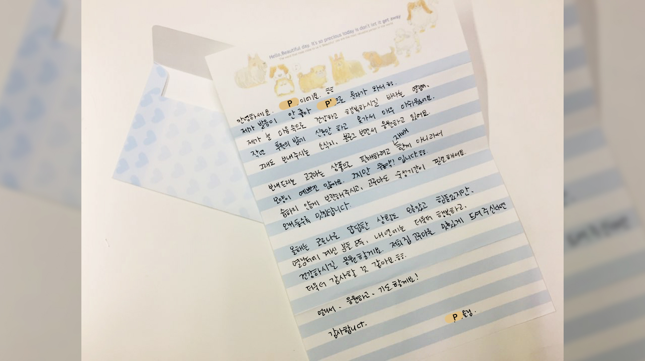 - 편지 나눔을 흔쾌히 허락해 주셔셔 감사합니다, P후원자님:) -