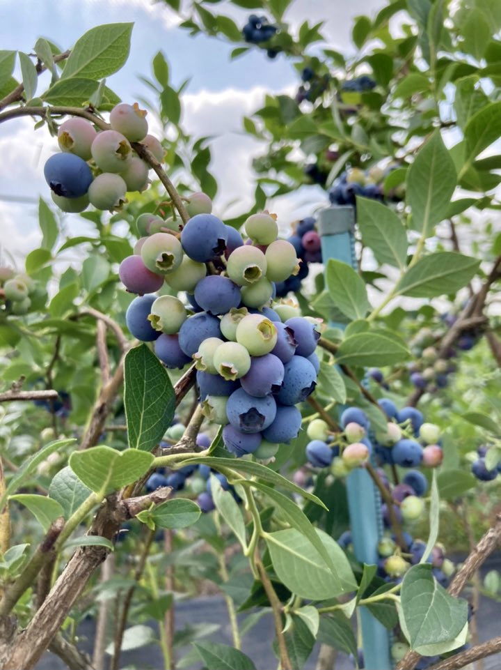 블루베리 따기 체험도 다녀왔는데요, 햇볕이 강해 이른 오전에 얇은 긴 옷을 입고 출발했습니다. 블루베리를 키만큼 먹고 오겠다는 의지를 불태우며 늦잠을 뒤로 하고 새벽같이 일어나 햇볕을 쬐고 걸으며 몸와 입이 즐거운 시간을 보냈습니다.