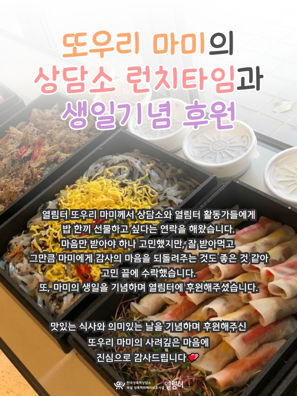 [후원] 열림터 또우리 마미의 상담소 런치타임과 생일기념 후원 본문