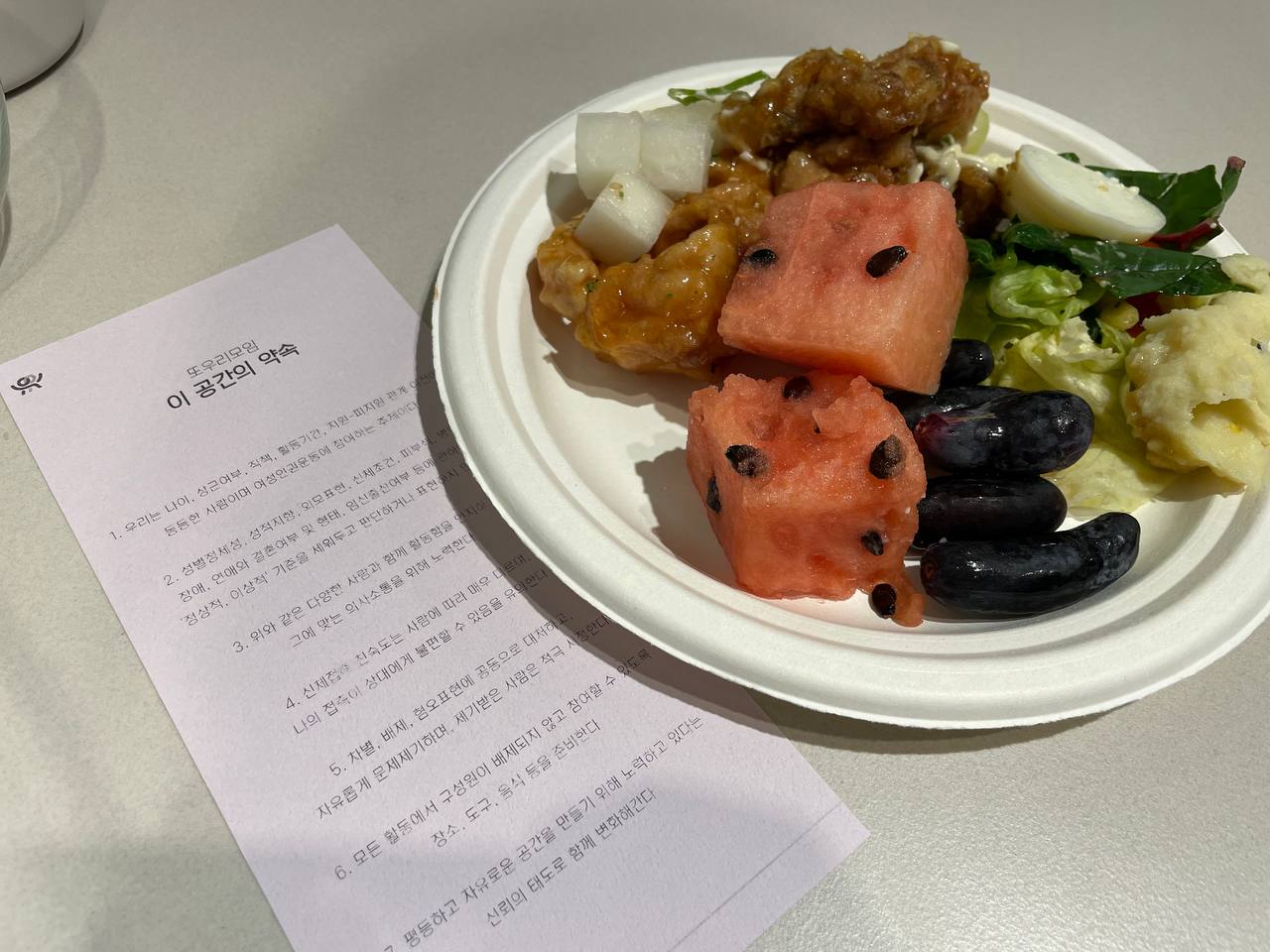 모임이 생각보다 빨리 끝나서 아쉬운 면도 있었다. 중간마다 따로 자유 시간을 주면 좋겠다는 생각이 들었다. 같이 이야기를 나누고 싶은 분이 많았는데 끝나서 얼른 가는 모습을 보고 ‘아, 나는 다시 일상으로 돌아가야겠구나.’ 하는 생각이 들었다. 비록 우리는 각자의 일상으로 돌아가지만, 항상 서로의 삶을 응원하고 있다는 것을 알고 기억하면 좋겠다. 기대 이상으로 뜻깊은 시간을 보냈다. 이러한 자리를 마련해주신 여러 선생님께 감사의 말씀을 드리고 싶다.